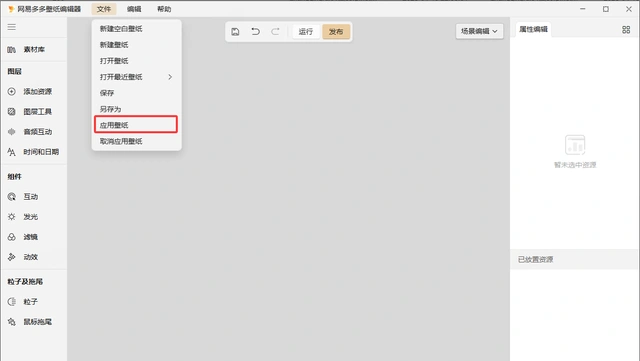 2、壁纸制作好后,也可以直接点击 “文件-应用壁纸” 预览壁纸效果或是设置壁纸