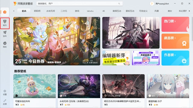 1、点击 “壁纸制作” ,安装好编辑器后,进入编辑器可以开始壁纸制作
