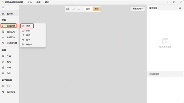 - 点击 “素材库” 可从 网易多多编辑器提供的素材库里实时下载并使用素材库里的图片